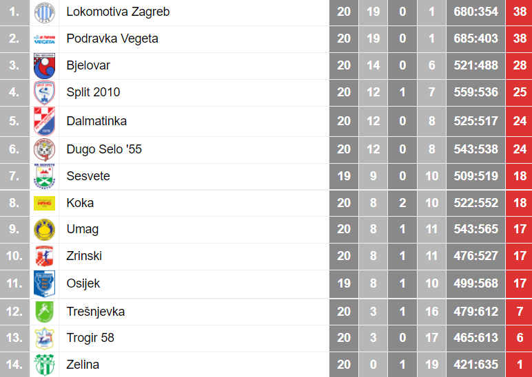 DALMATINKA: Domić, Gustin, G. Zelić, Lovrić, Jarak 8, Jerković, A. Zelić 4, Bule 7, Vugdelija, Marić 5, Burđelez, Žderić 3, Barbir, Tolj, 2, Krilić, Jelčić