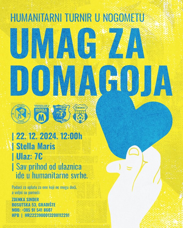 Zahvaljujemo se umaškim klubovima koji su odmah prihvatili poziv na turnir koji će se igrati u skraćenom formatu. Sav prihod od prodanih ulaznica ide u humanitarne svrhe, odnosno obitelji Domagoja Sindera o kojemu ste prilog mogli pogledati na HRT-u, a čiju poveznicu možete pronaći ovdje.