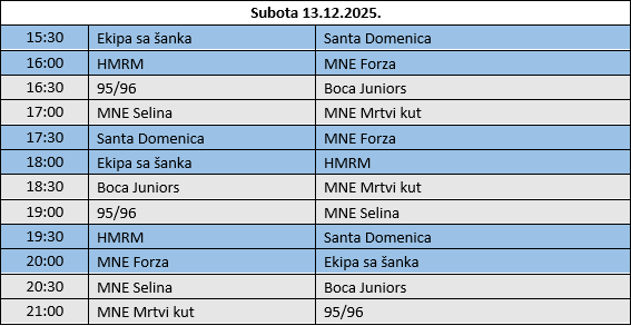 RASPORED SUBOTE 13. prosinca