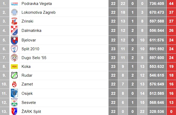 PRVA HŽRL – LJESTVICA