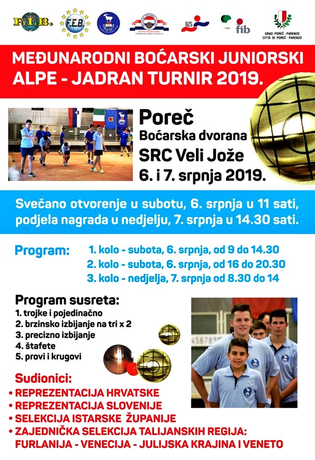 U organizaciji Istarskog boćarskog saveza i suorganizaciji Boćarskog kluba Istra Poreč u porečkoj boćarskoj dvorani SRC Veli Jože će se predstojećeg vikenda, u subotu i nedjelju, 6. i 7. srpnja odigrati drugi međunarodni ekipni juniorski Alpe – Jadran turnir.