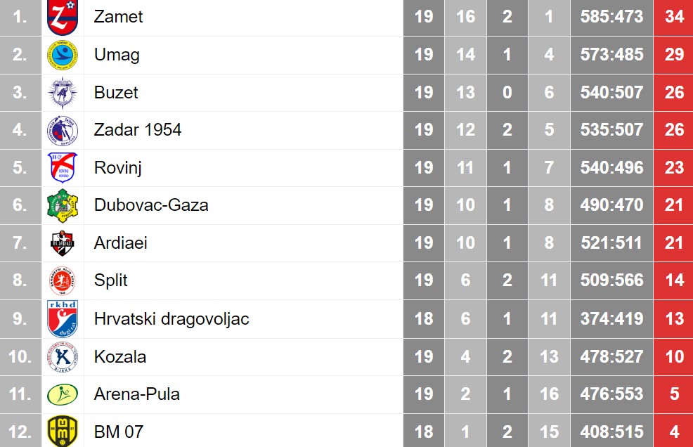 Iskusni članovi sastava – Bošnjak, Stapar i Majić odveli su ih na 33:28 i tu je bio kraj. U Buzetu nova domaća pobjeda. Ponovno je Buzećane do pobjede vodio sjajni Sandro Samardžić koji je postigao osam golova koji je i u 58. minuti pogodio za 27:22 pa konačni rezultat malo i zavarava. Pulska Arena je pomalo očekivano poražena na dalekom gostovanju u Župi Dubrovačkoj.