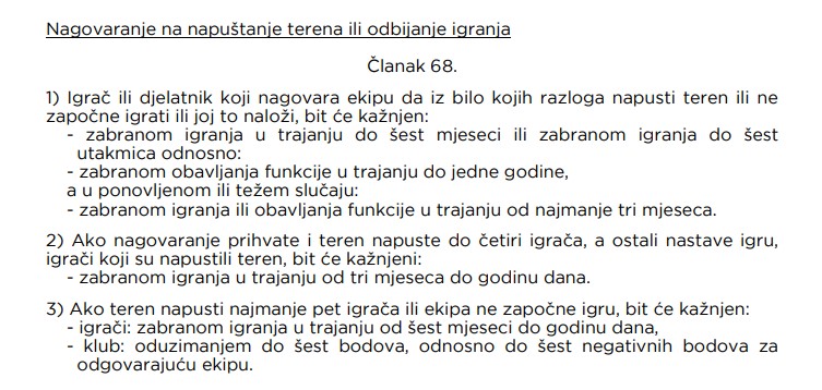 Predstavnik kluba sigurno će biti drastično kažnjen, a nažalost po Buzećane, u Disciplinskom pravilniku HNS-a postoji i imperativ kažnjavanja igrača koji su napustili na teren, i to minimalno šest mjeseci.