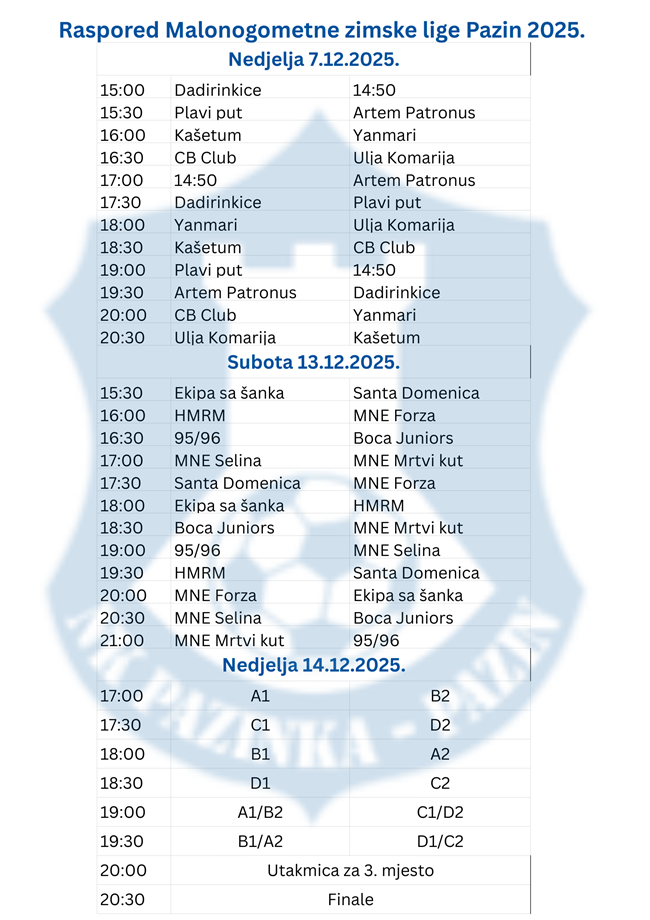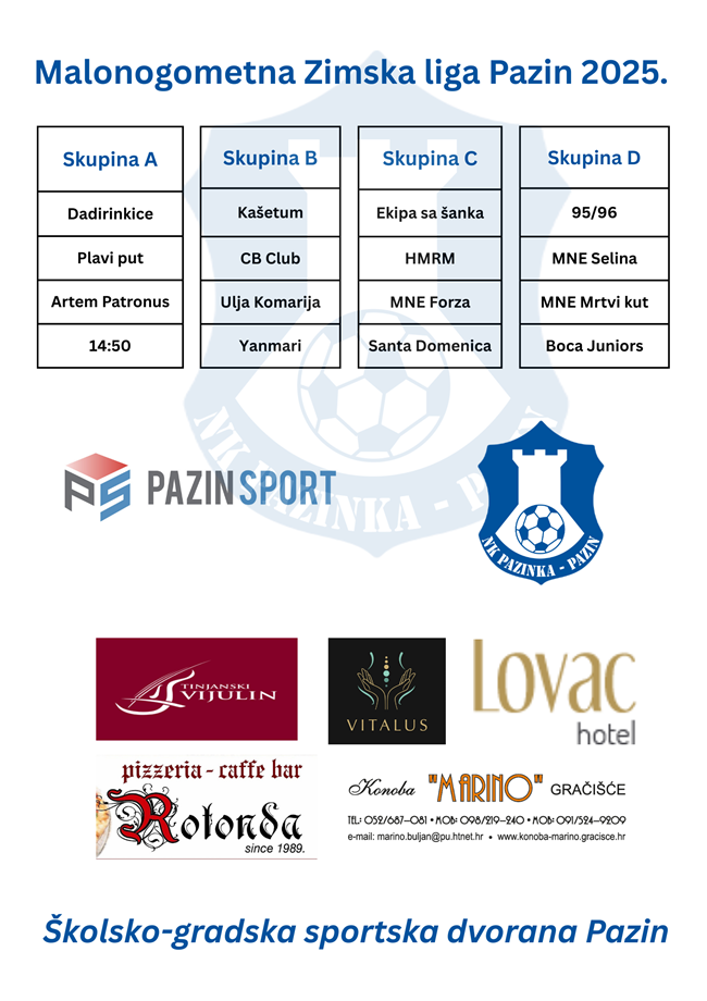 U organizaciji Nogometnog kluba Pazinka-Pazin i ove godine Malonogometna zimska liga u Pazinu igrat će se u Školsko-gradskoj sportskoj dvorani u dva vikenda i to 7., 13. i 14. prosinca.